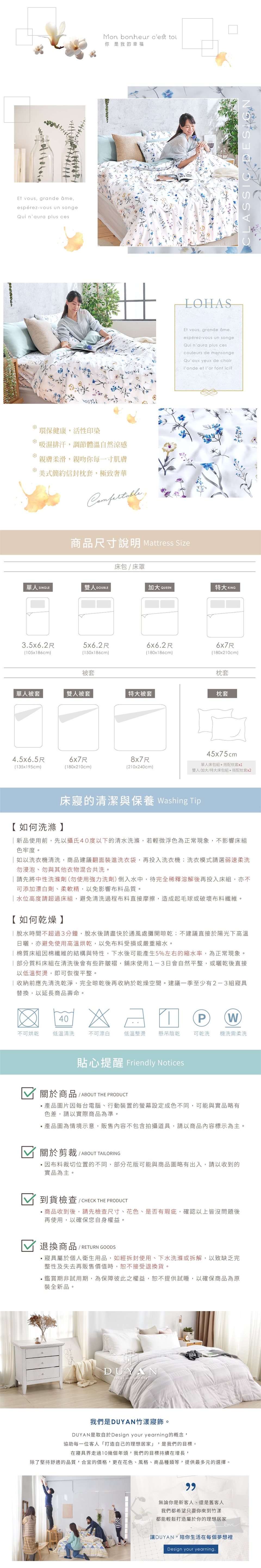 不可漂白、乾洗,並定期日曬達到消毒除溼效果