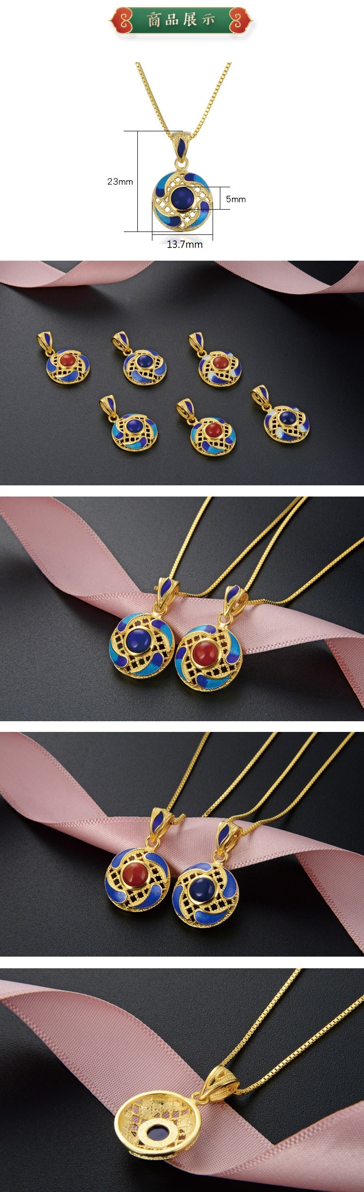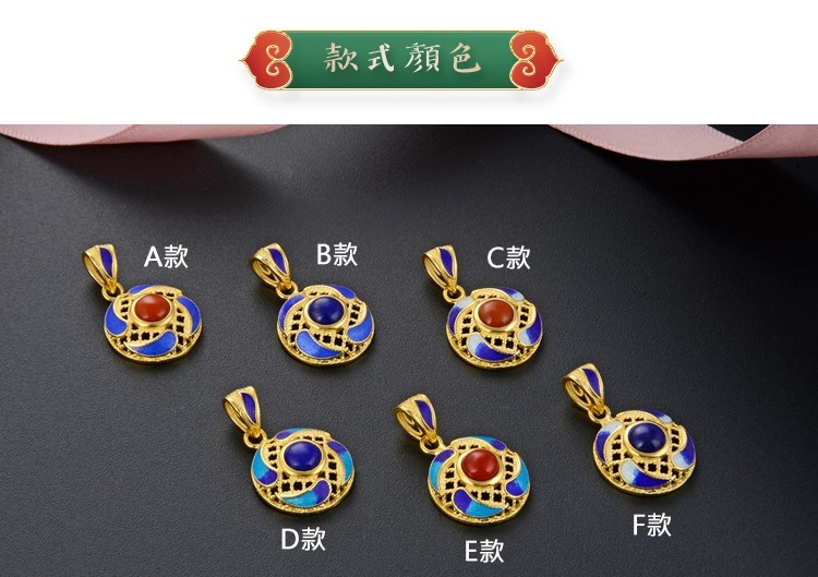 【石拓樸玉】純銀925寶石鑲嵌氣質縷空圓盤景泰藍造型吊墜 造型吊墜   (6款任選)