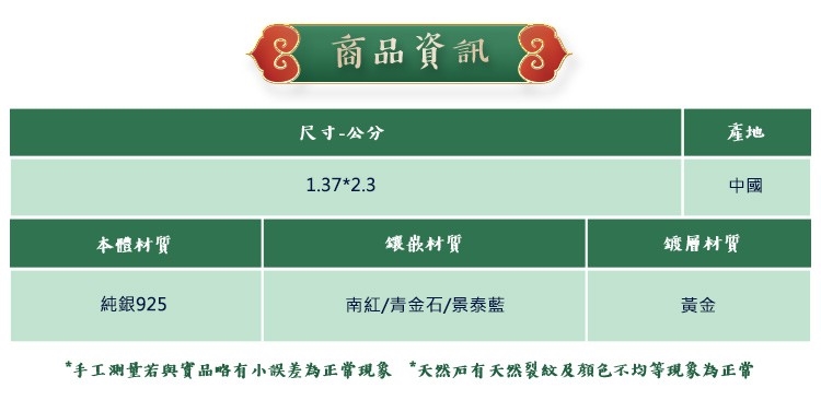 ◆極少數人對黃金純銀也可能產生過敏,使用後產生肌膚不適敏感之現象,請立即停止使用。