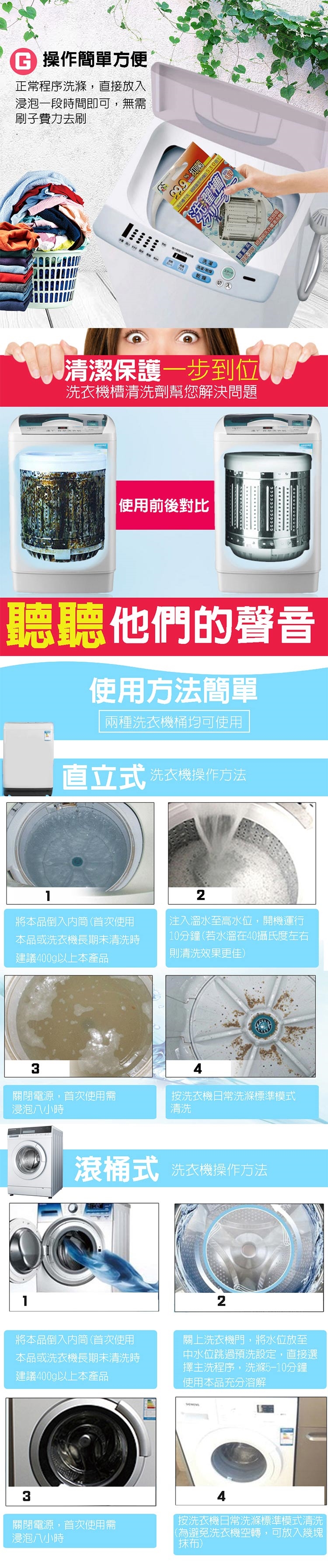 *洗衣槽清潔劑 建議10KG以下洗衣機放入120g 10KG已上放入200g