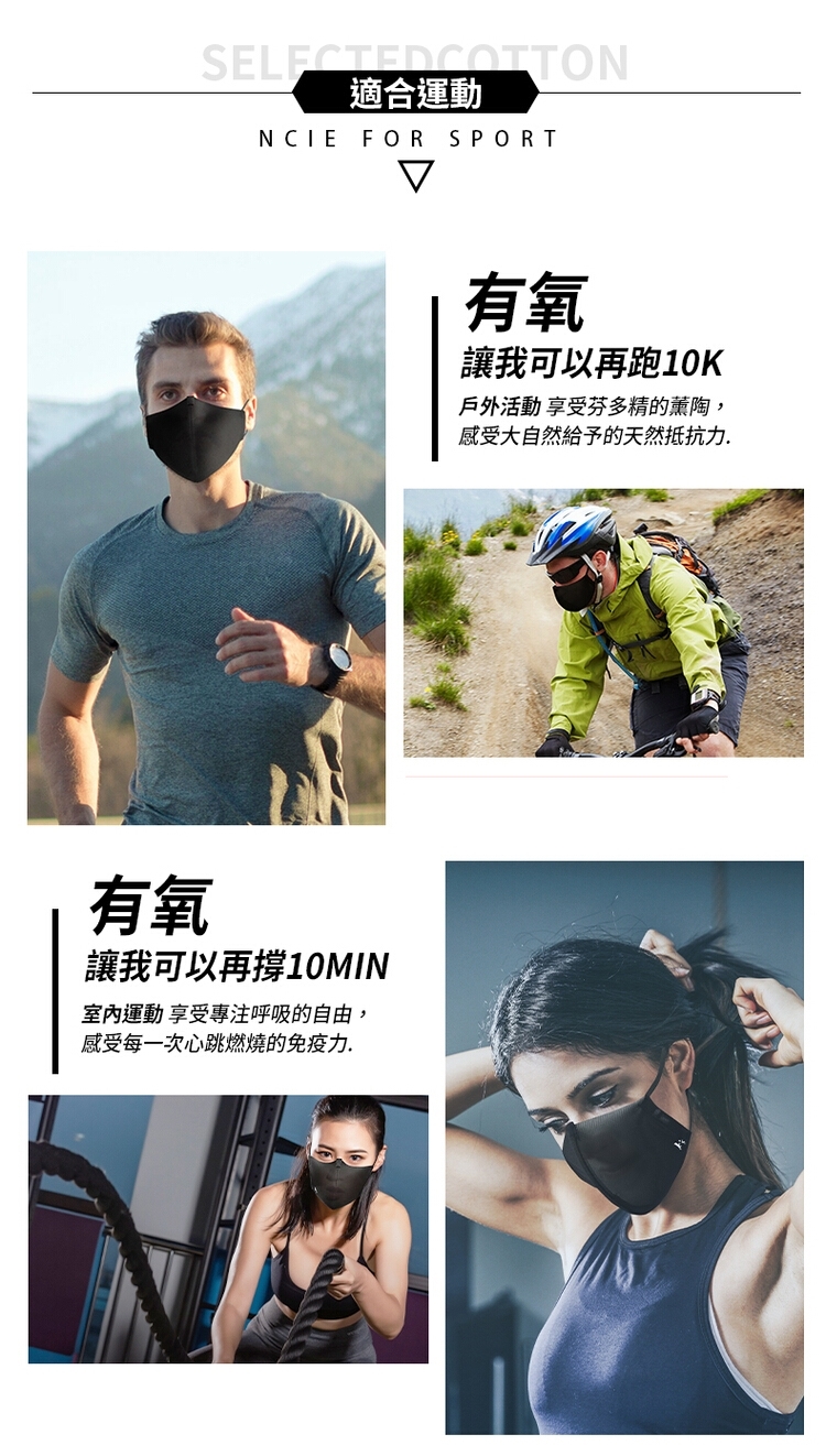 「3D立體超有氧運動口罩」使用日本超透氣彈力纖維網布料