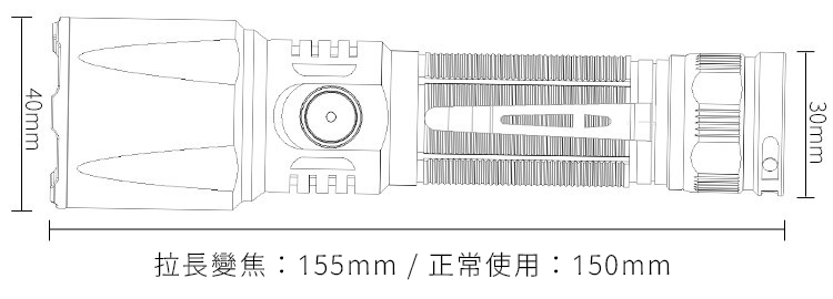 ●最大續航力(強光亮度下/2500mAh 18650鋰電池):約1.5小時