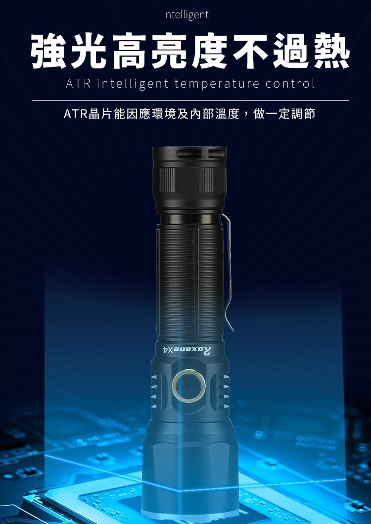 ●ATR晶片控溫,高亮度下握在手上不燙手。
