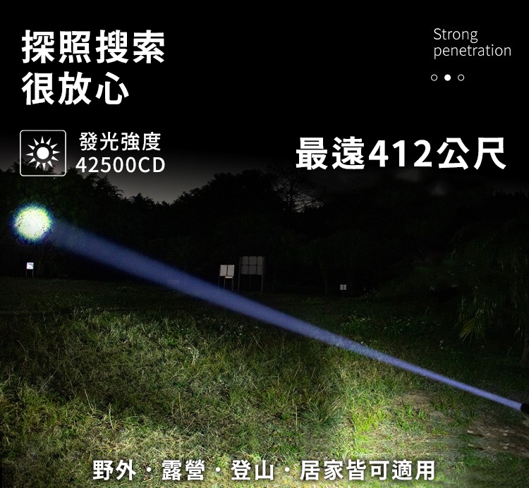●最遠射程可到412米,可野外登山露營用。