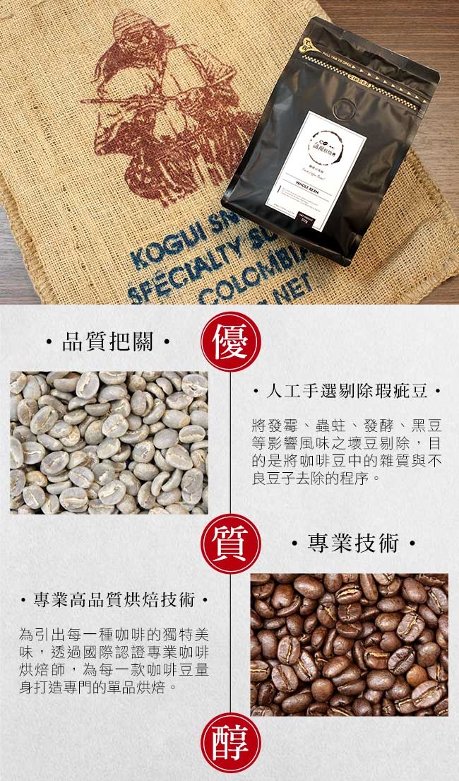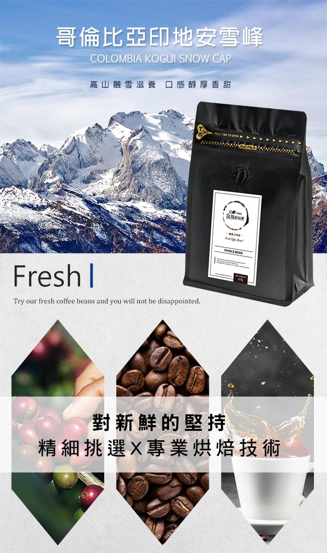 品名:CoFeel 凱飛鮮烘豆哥倫比亞印地安雪峰中深烘焙咖啡豆