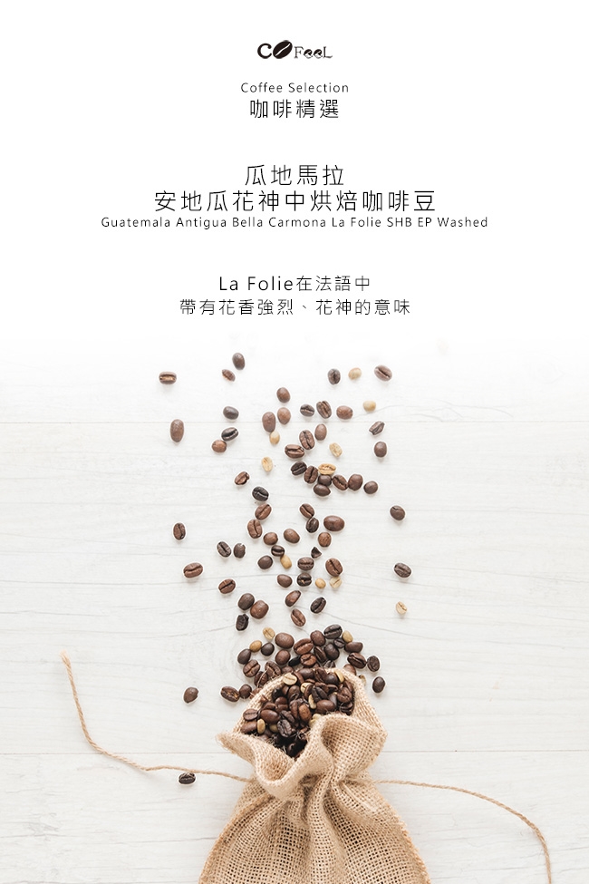 品名:CoFeel 凱飛鮮烘豆瓜地馬拉安地瓜花神中烘焙咖啡豆