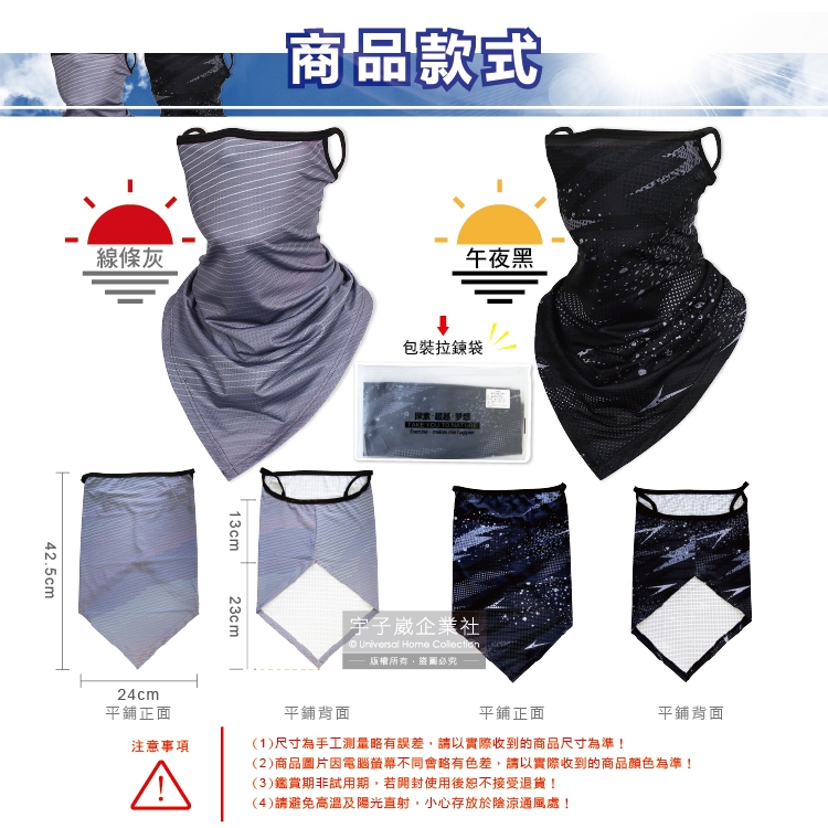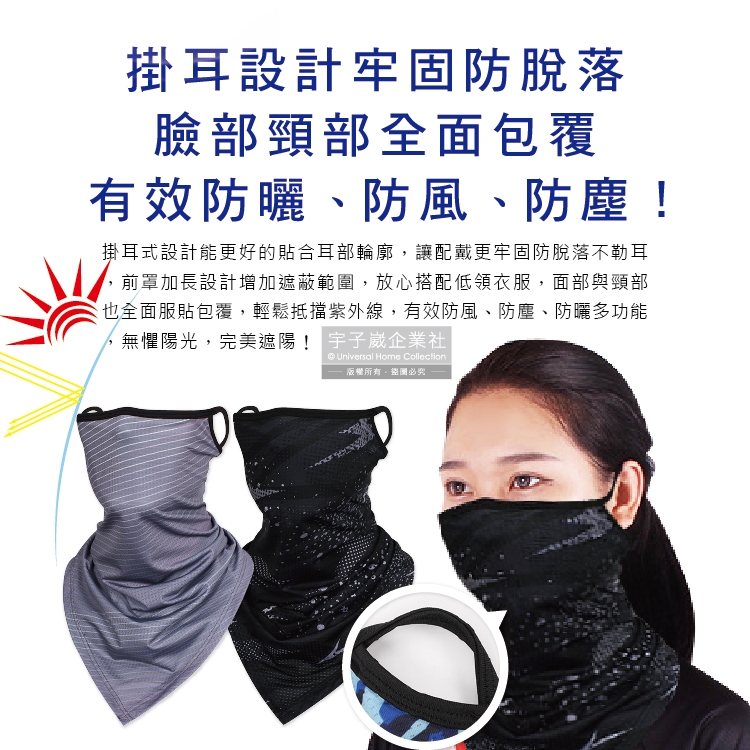 ●品名:吸濕排汗防曬抗UV涼感冰絲透氣護頸圍脖掛耳三角巾面罩
