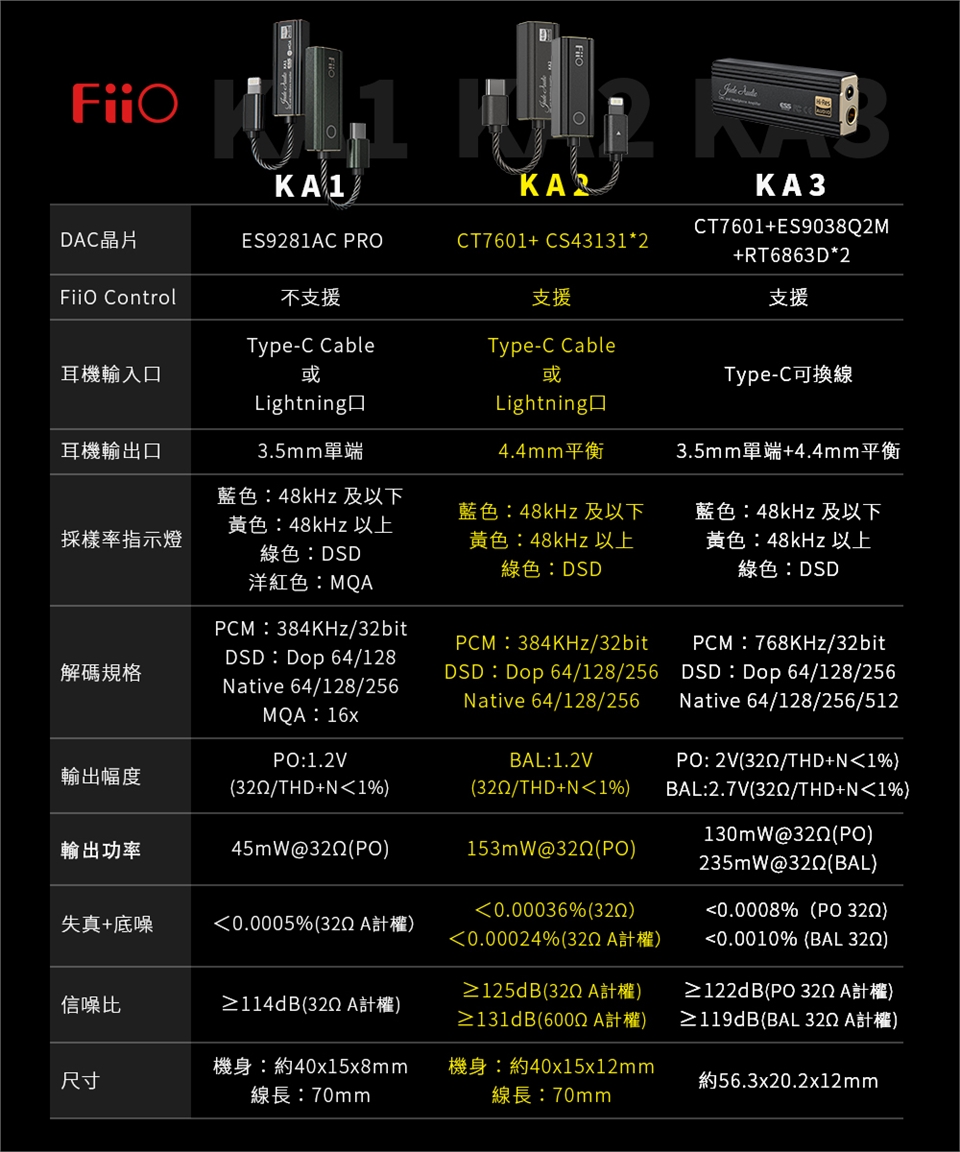 注意事項:本產品內容物僅包含KA2(Type-C版)x1,USB-A轉接頭x1。圖中耳機僅為示意圖,無包含於產品內。
