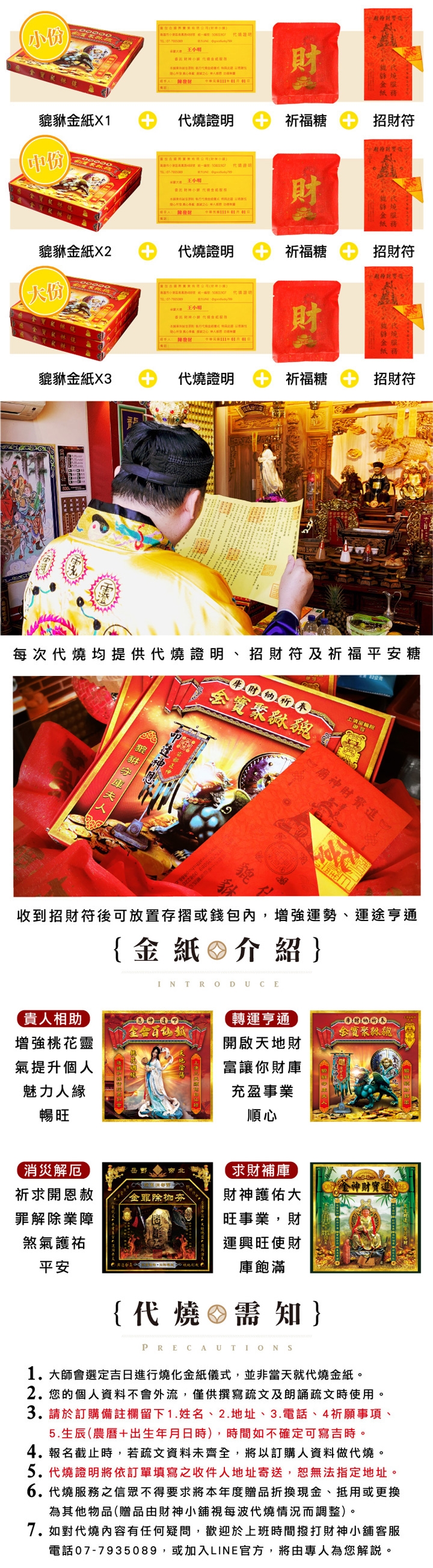 由進寶財神廟舉行燒化金紙儀式,到時候會傳當天的燒化金紙照片給您。