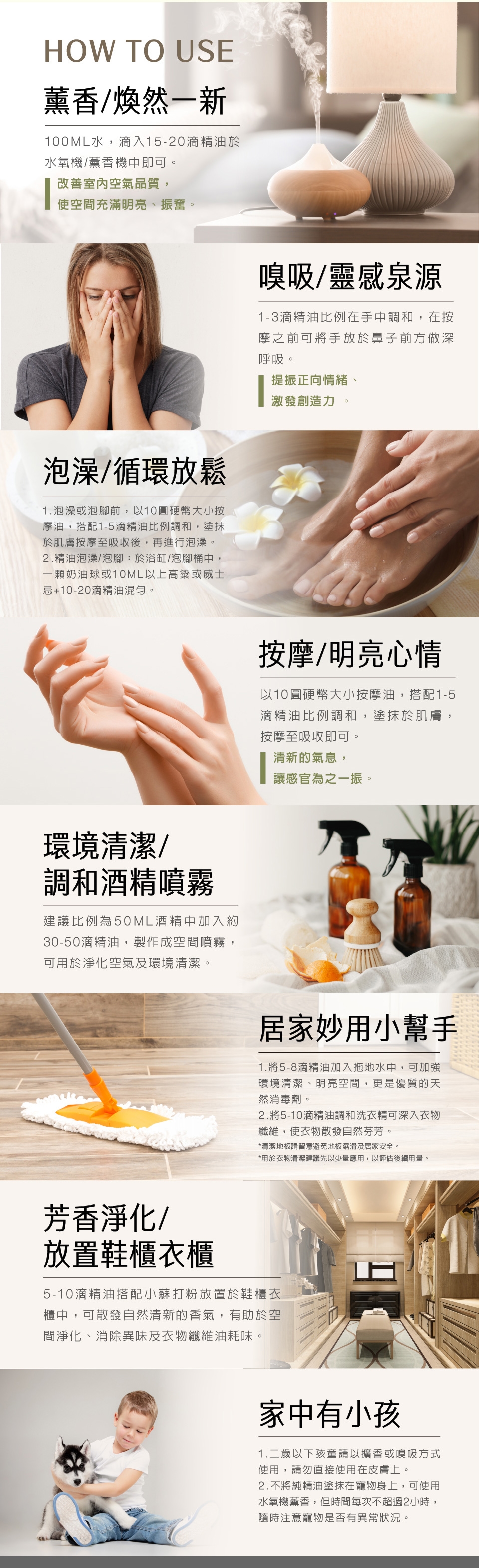 嗅聞吸入、薰香或搭配按摩油按摩。