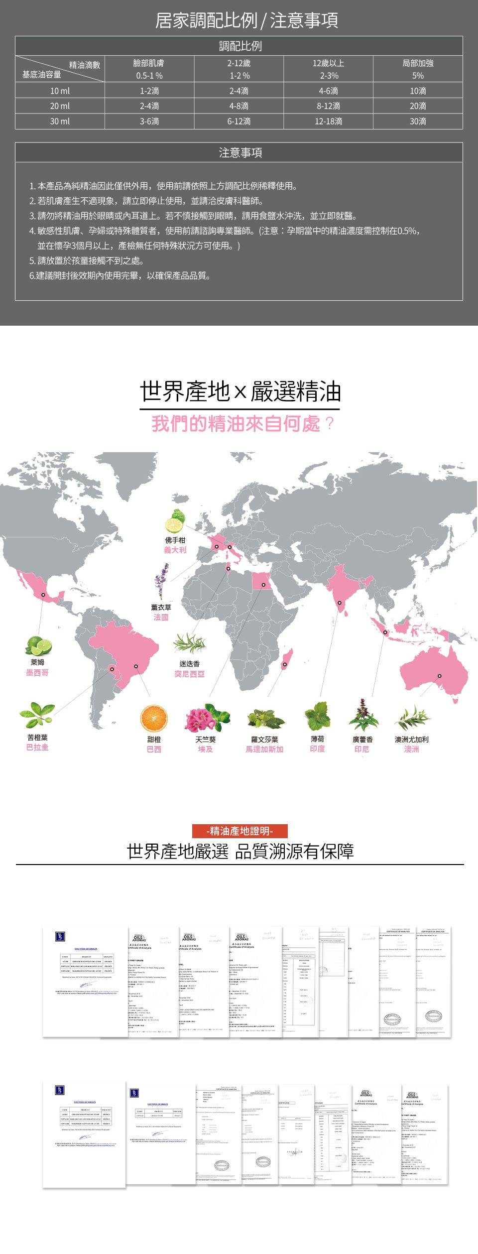 僅供外用,使用前須稀釋使用。避免讓幼兒觸及,敏感性肌膚、孕婦或特殊體質者使用前請諮詢專業醫師,若肌膚產生不適現象,請立即停止使用,並請洽皮膚科醫師。建議開封後六個月內使用完畢,以確保產品品質。