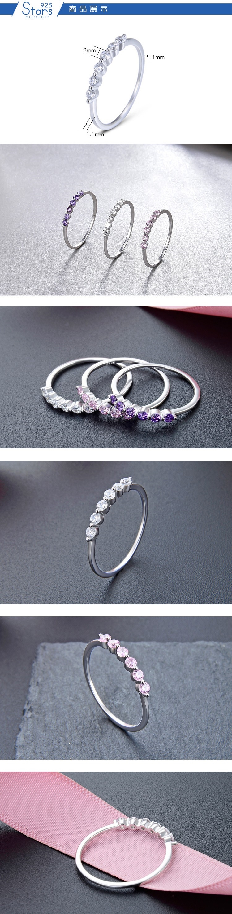 【925 STARS】純銀925微鑲鋯石極簡單排美鑽造型戒指  造型戒指 美鑽戒指 (3款任選)