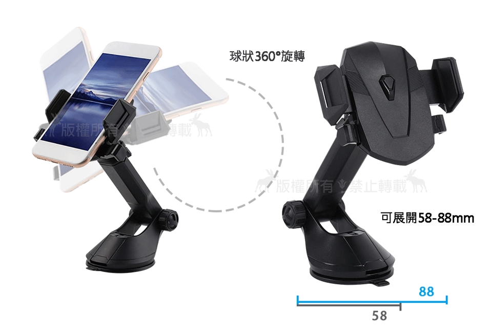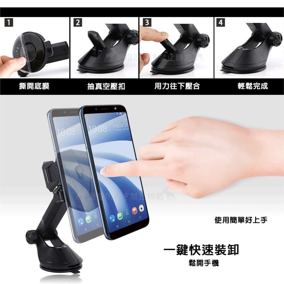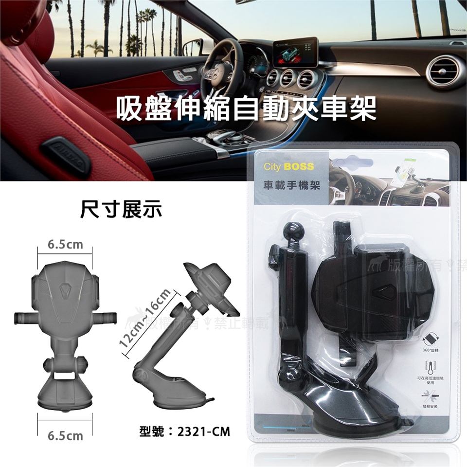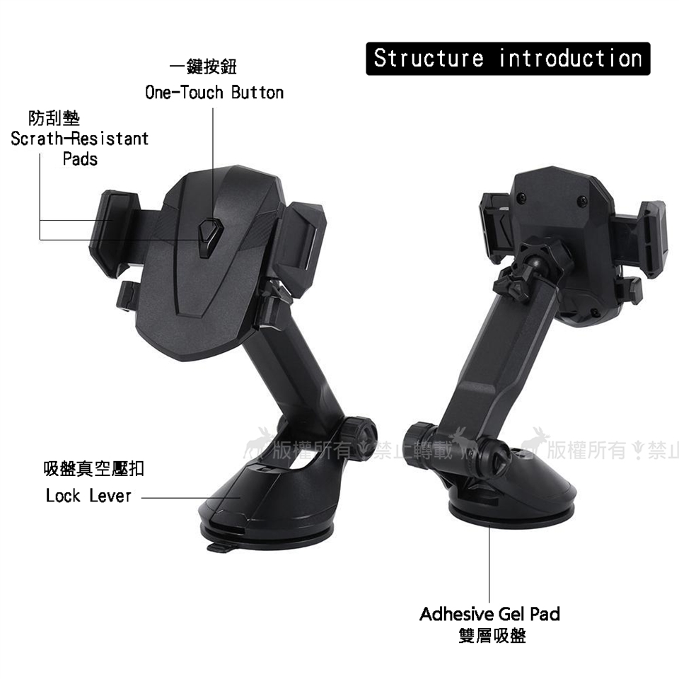 全方位調整 兩用吸盤伸縮自動夾車架 萬用手機支架