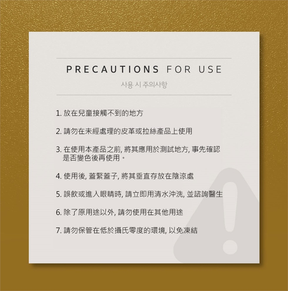 2. 在使用本產品之前, 將其應用於測試地方, 事先確認是否變色再使用