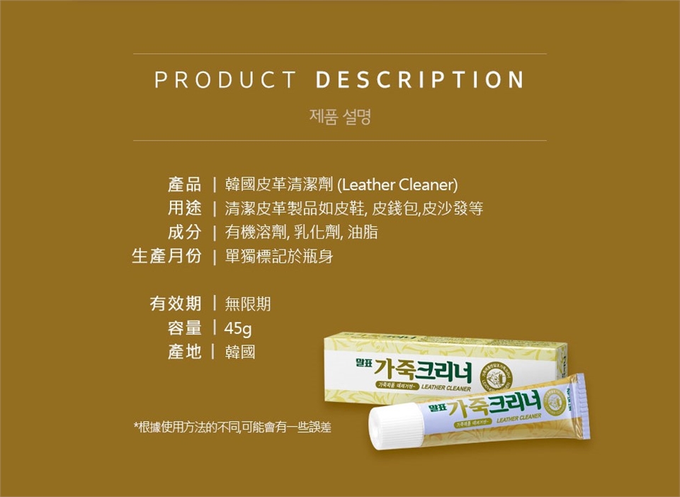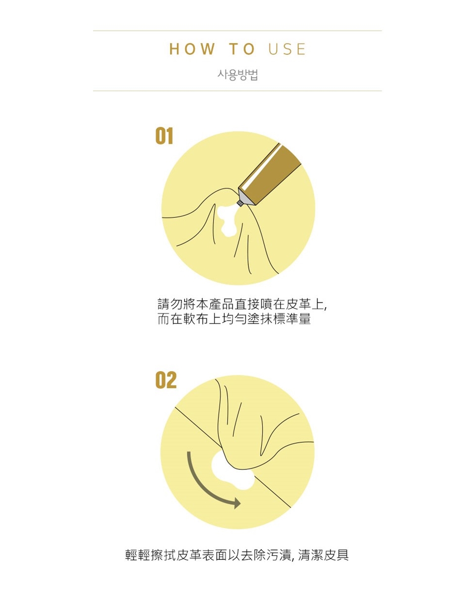 用途 : 清潔皮革製品如皮鞋,皮錢包,皮沙發等