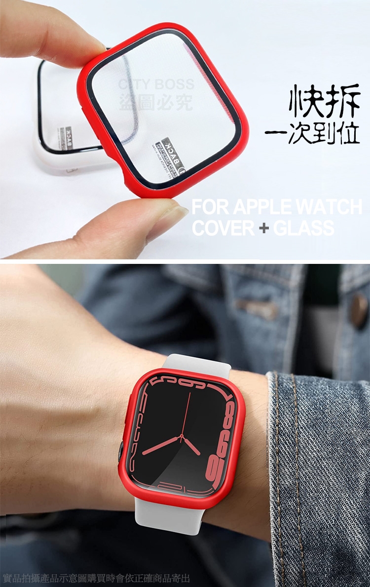 CITYBOSS for Apple Watch 一體式玻璃加防護錶殻-41mm