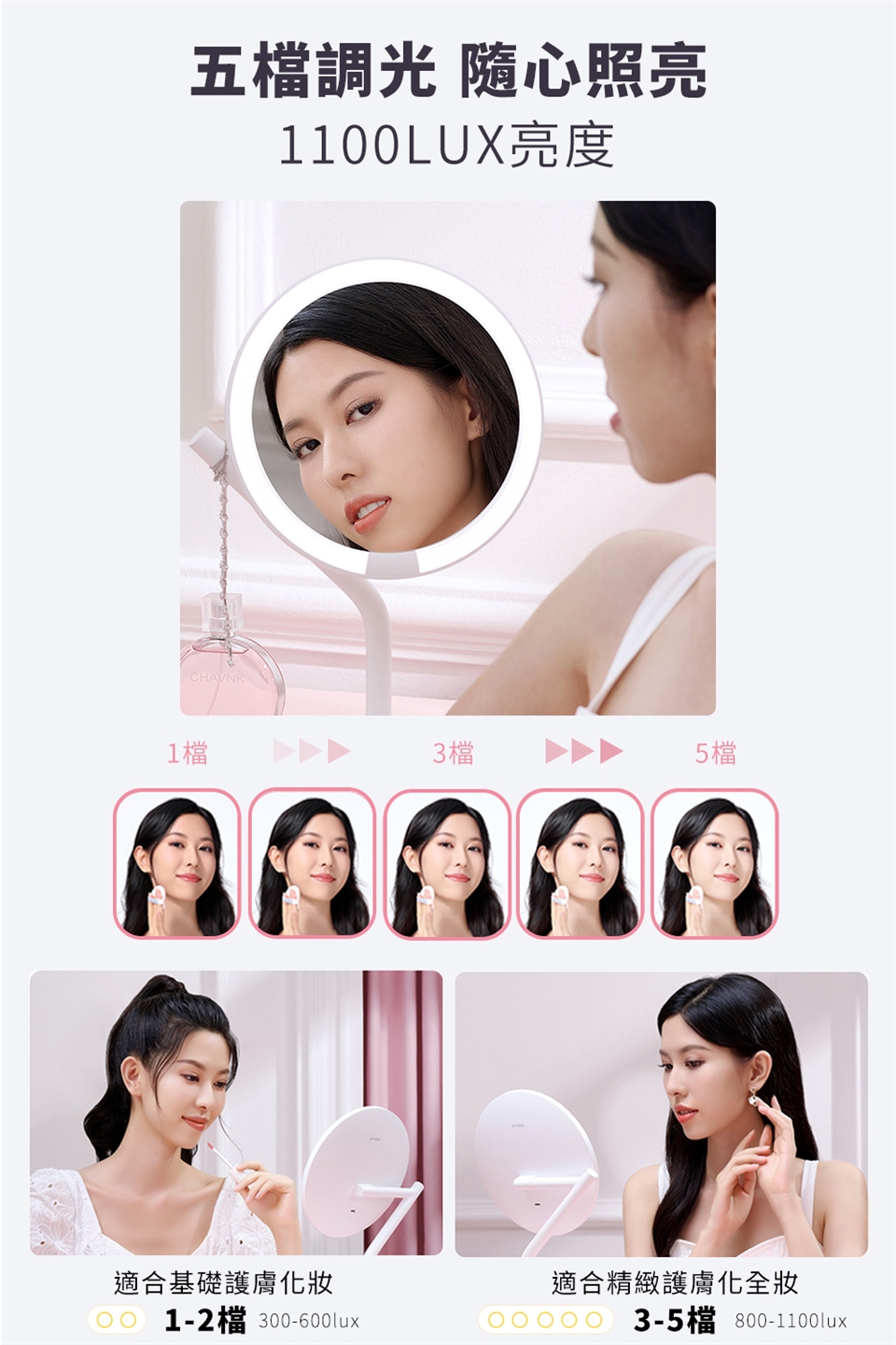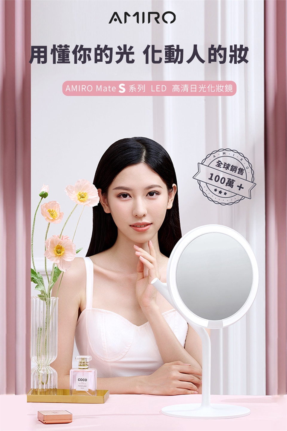 品名:AMIRO Mate S 系列LED高清日光化妝鏡-極簡白/櫻花粉
