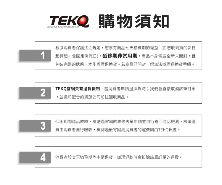 🔺猶豫期非試用期,退貨商品須為 全新未開封,且包裝完整狀態才能辦理退貨,商品如已開封