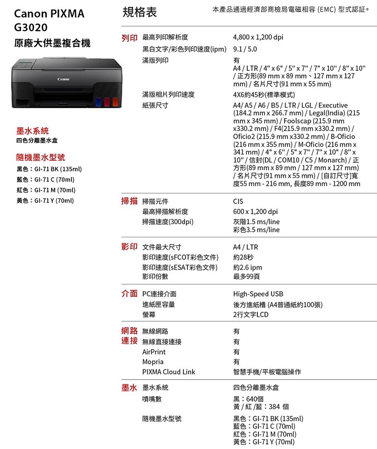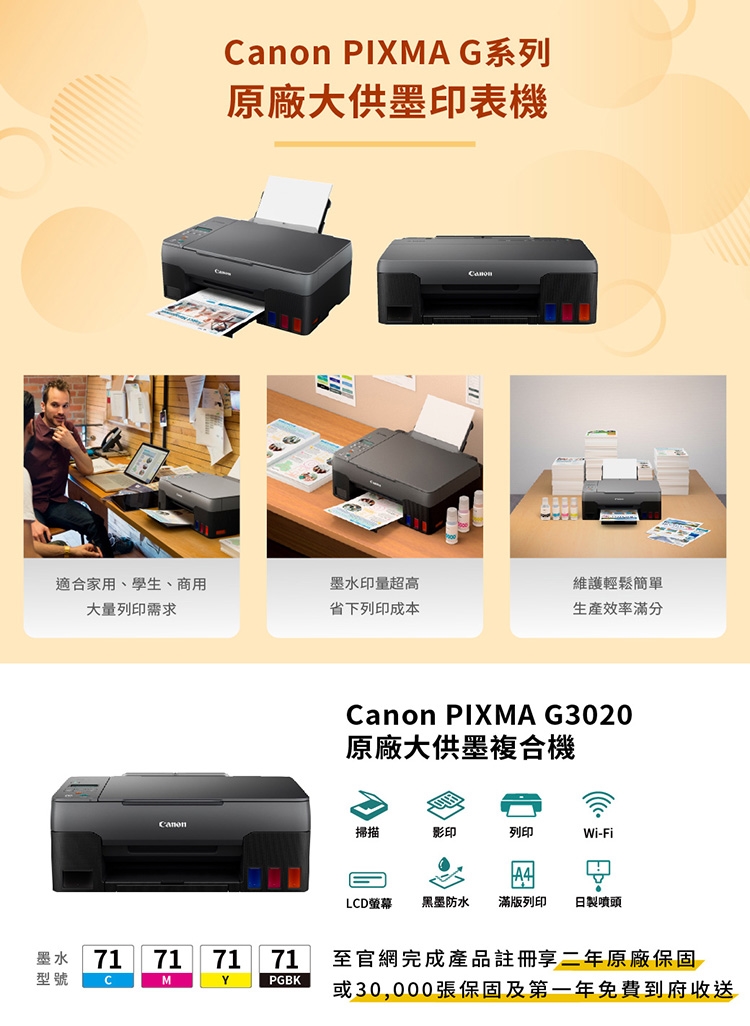 三合一功能:彩色列印 / 彩色影印 / 彩色掃描