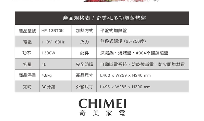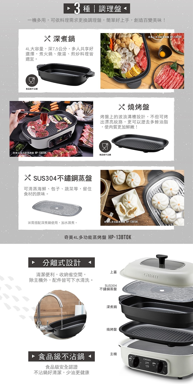 【CHIMEI奇美】4L多功能大容量蒸烤盤(HP-13BT0K)
