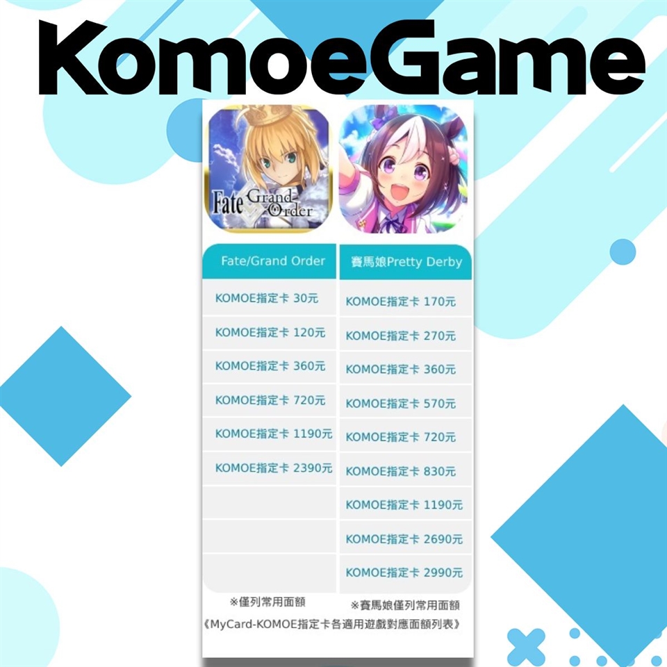 商品限制:僅限儲值進KOMOE系列遊戲帳號內