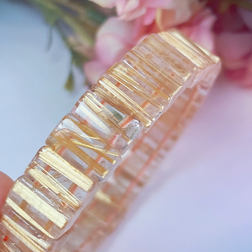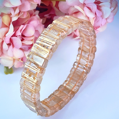 鈦晶(Rutilated-Quartz)也是髮晶的一種,指的是晶體內有著金黃色「金紅石(二氧化鈦)」共生的白水晶,水晶內的金紅石呈現出一絲絲如髮絲形狀時就稱為「金髮晶」,而當裡頭金紅石面積較大、呈現片狀或板狀時,則被稱為「鈦晶」,主要產地為巴西。