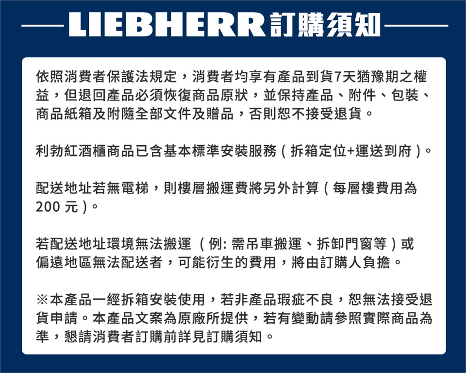 圖示一為利勃酒櫃 Barrique 系列商品參考目錄,非實品本體及外觀。敬請消費者留意選購。