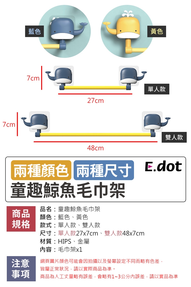 ◆ 品名:童趣鯨魚毛巾架-單人款