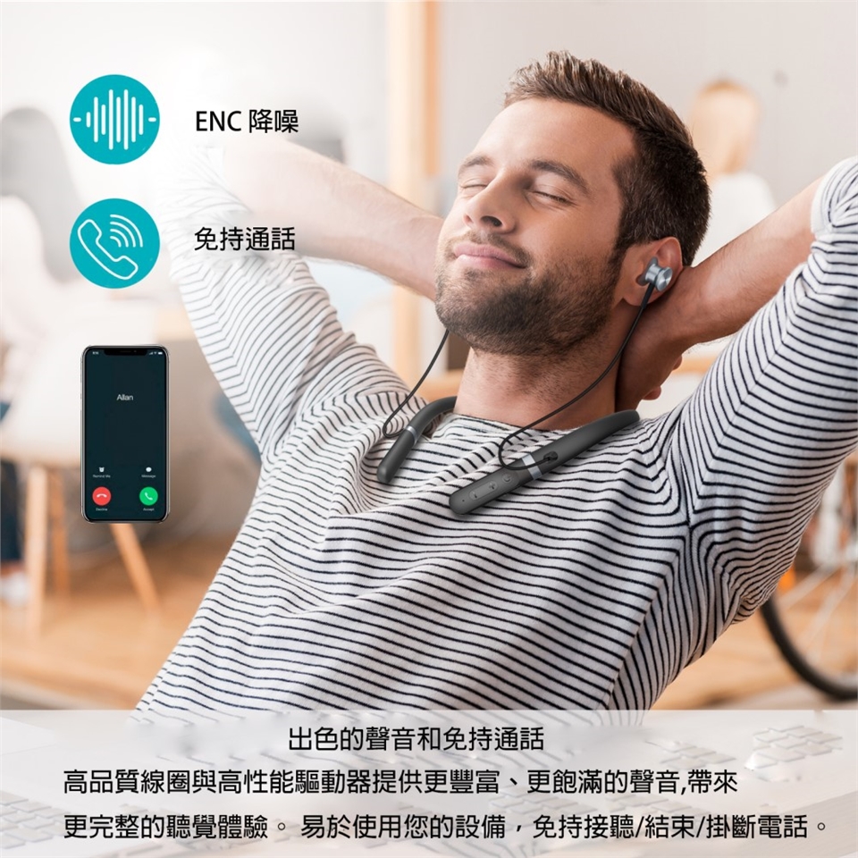 磁吸式頸掛耳機,不用時可吸住,不怕掉下來。