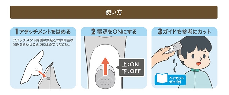 ●附有3種類6段式定位梳,可針對孩童不同的喜好髮型做調整。