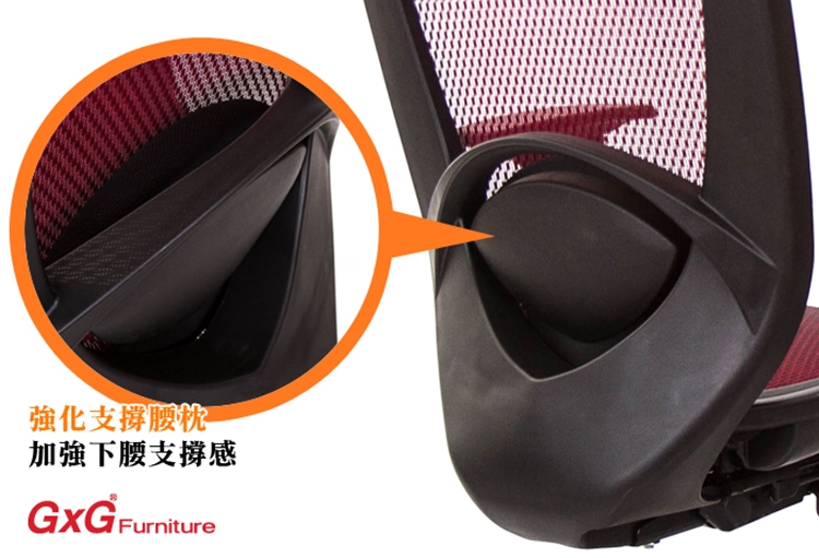 椅背後方添加設計護腰枕,加強下腰網面支撐力,不會後靠有網面鬆軟感(腰枕固定在框架上,無法拆卸)。