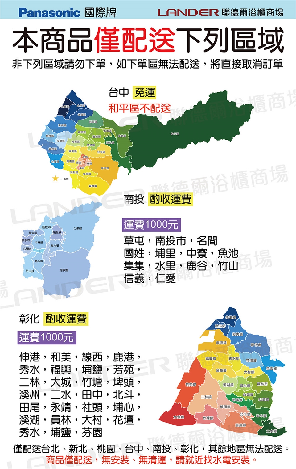 【貨運送貨至一樓,配送地區如圖所示,不含離島、偏遠地區、山區】