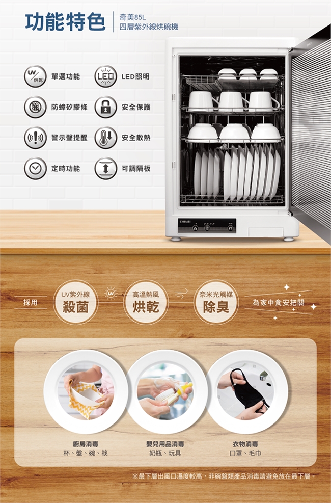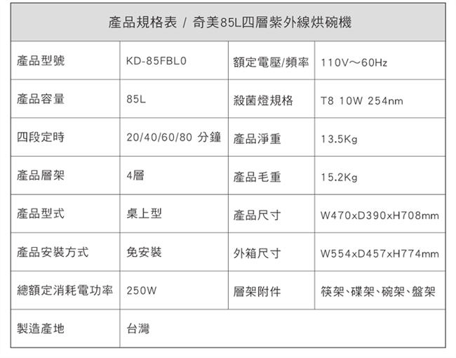 【CHIMEI奇美】 85L四層紫外線烘碗機(KD-85FBL0)