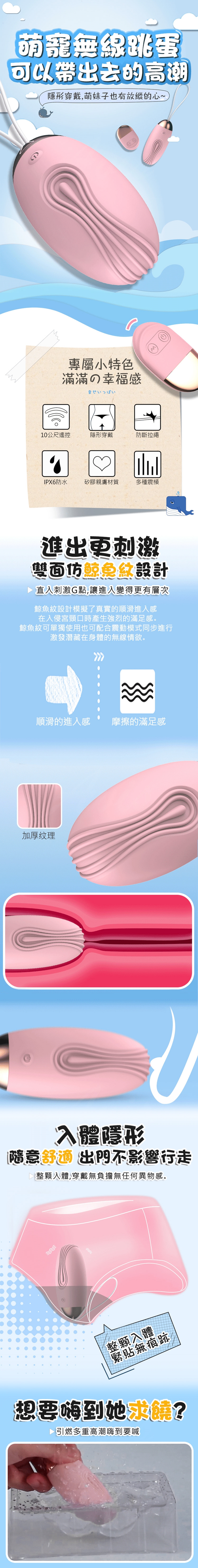 商品名稱:小鯨魚 10段變頻萌寵可愛柔軟矽膠遙控跳蛋