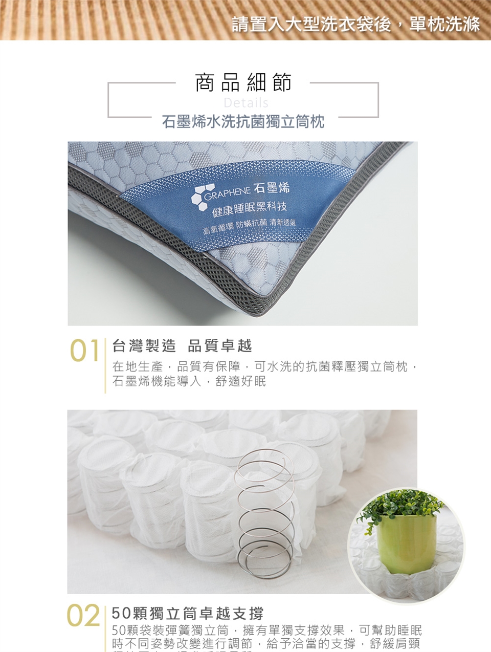 .請裝入洗衣袋,一次洗一個枕頭,請橫放於洗衣槽內洗滌,脫水後曬乾。