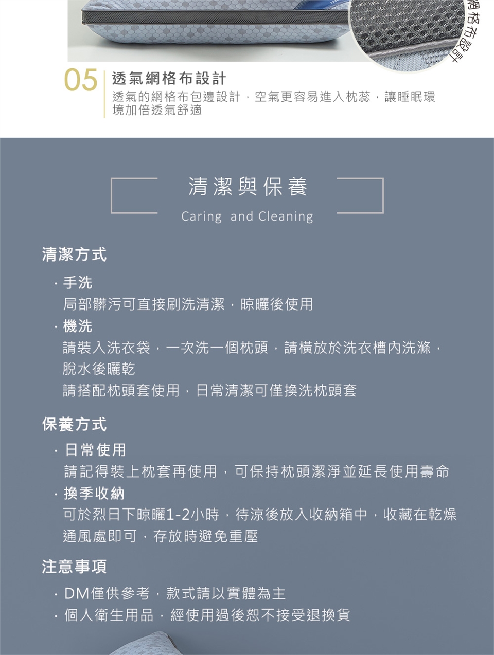 ※建議搭配枕頭套使用,可延長枕胎壽命,清潔持久