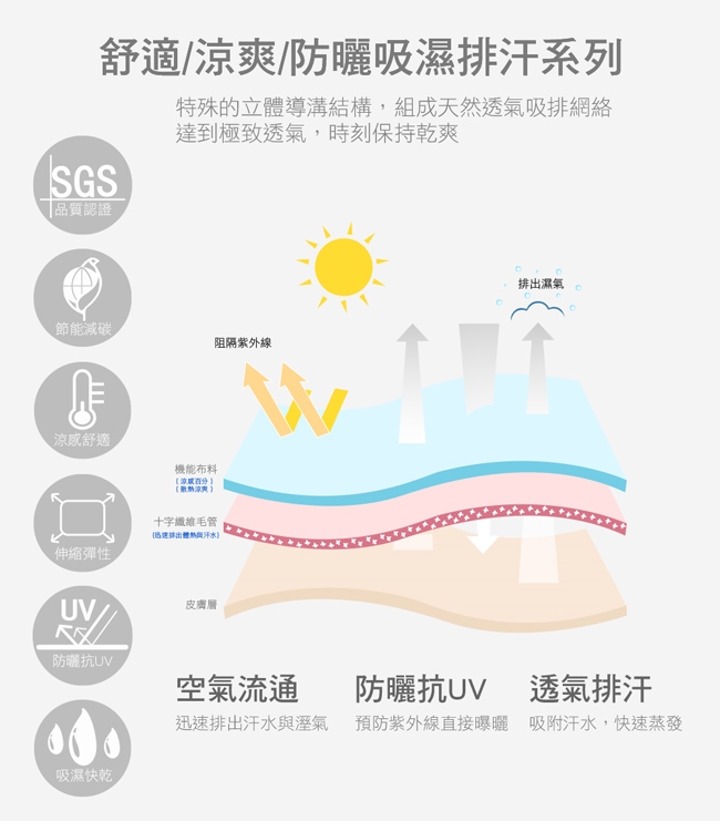 *快乾-吸濕排汗材質,運動隨時保持乾爽