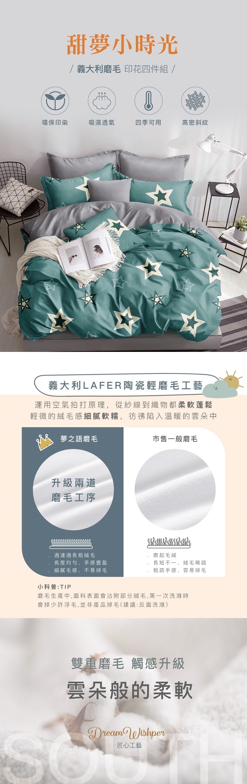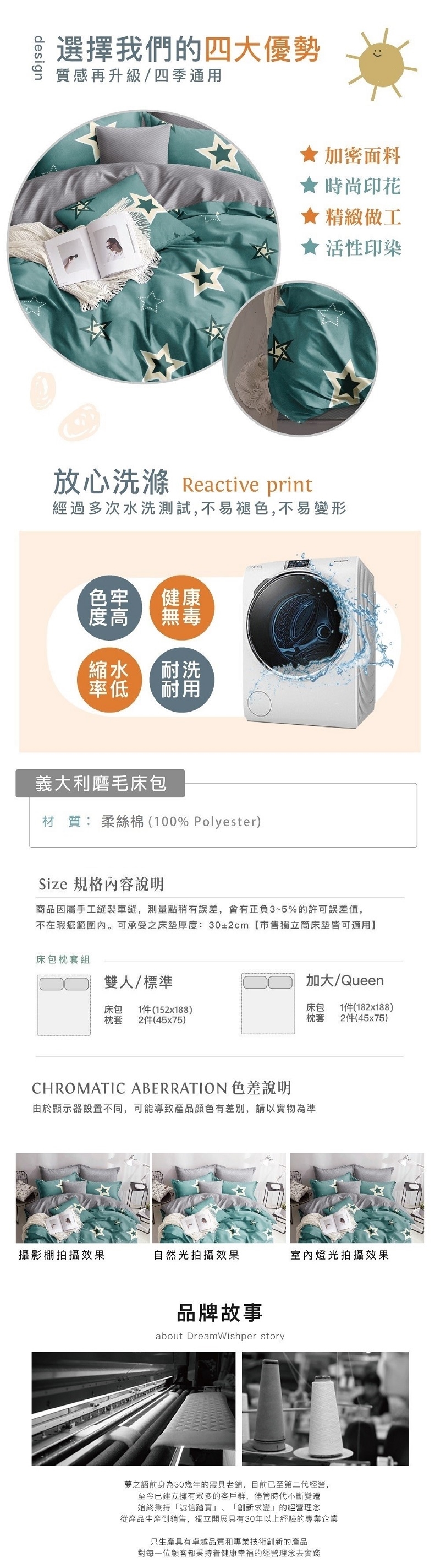 初次使用建議清水洗滌,將床組反面置入洗衣袋內再投入洗衣機