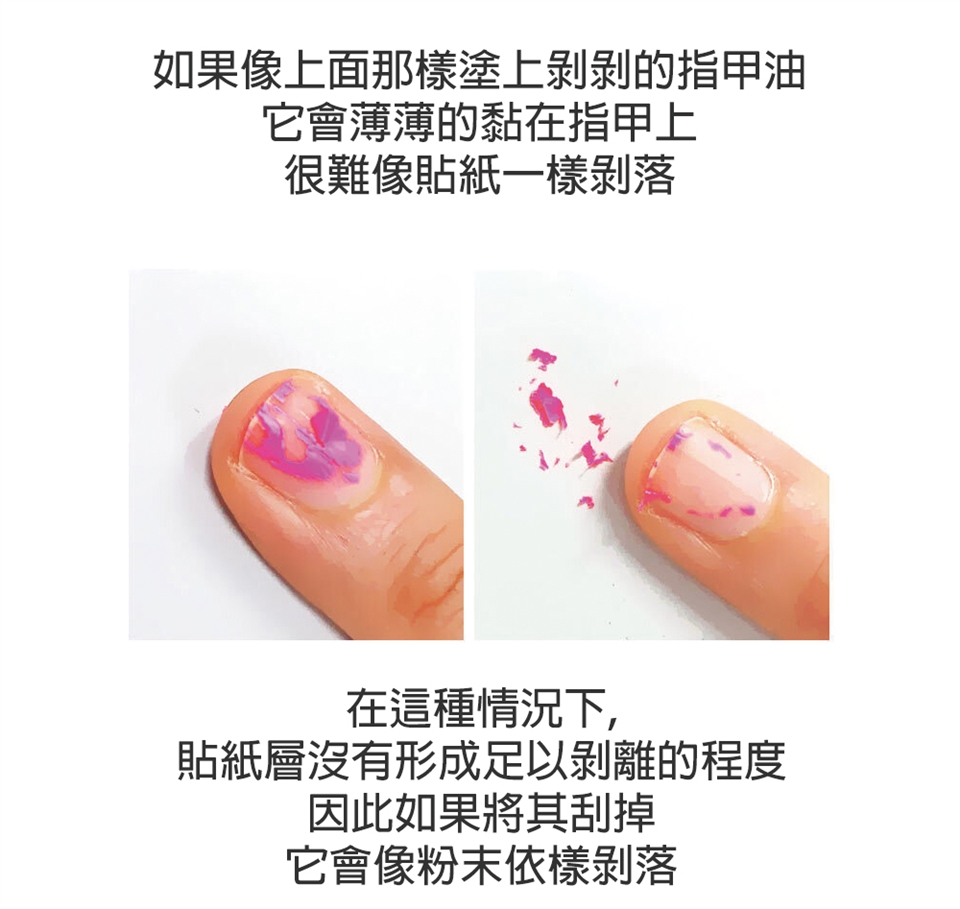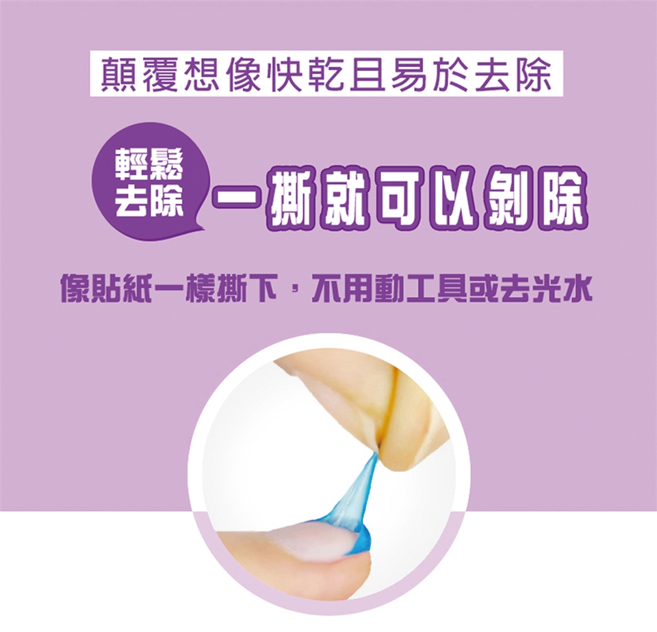 3. 像貼紙一樣撕下來(不需要任何指甲油去除剂或丙酮)