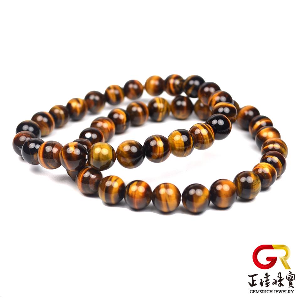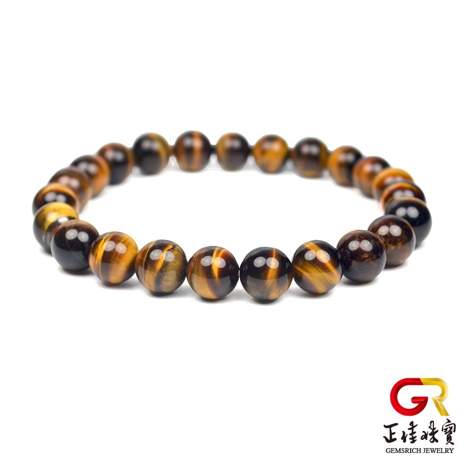 主石:黃虎眼石 經典沈著 8mm 圓珠手珠|日本彈力繩