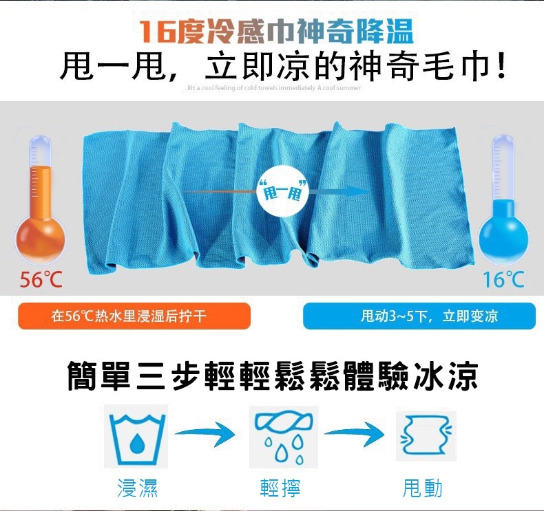 冰涼巾需在弄濕後擰乾下使用,放置脖子手臂,肌膚露出的地方皆可,有降溫的感覺!!