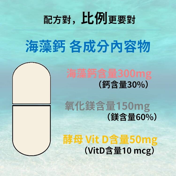 ★ 蘊含72 種珍貴海洋微量元素,天然海藻鈣不僅擁有鈣(>30%)及鎂(>2%),另外還有72種海洋中的微量元素,提供人體更完整均衡的營養補充