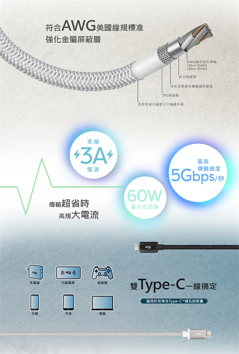 . 支援3A電流 高達60W功率 傳輸5Gbps/秒速