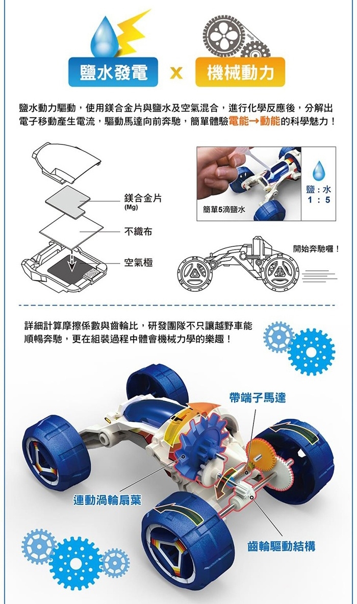 ⭐ 無須電池,只要一滴鹽水,車子就能奔馳15分鐘喔!