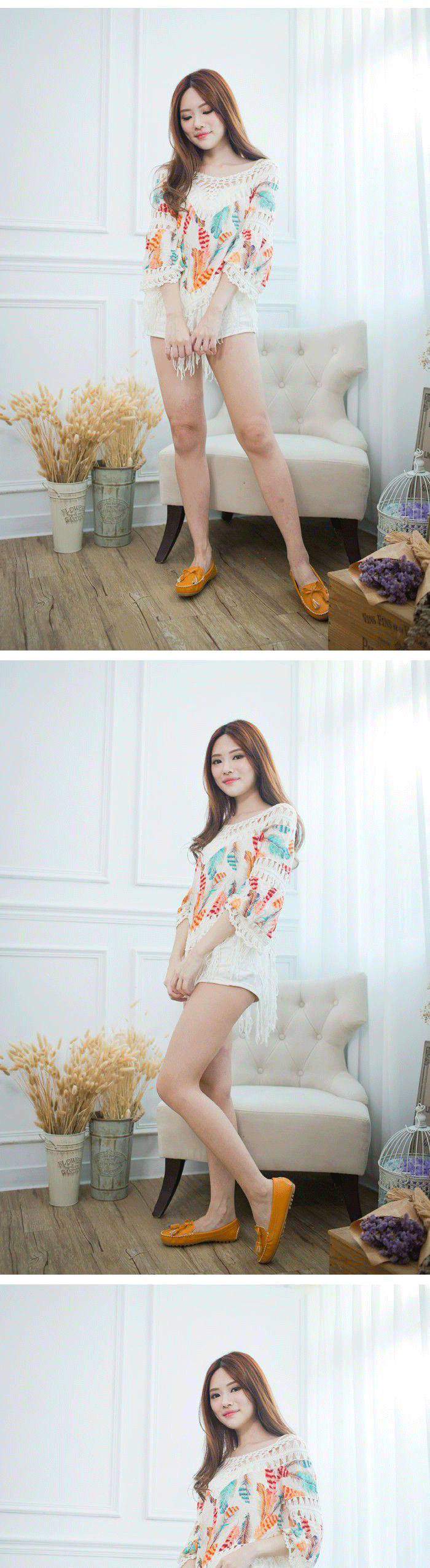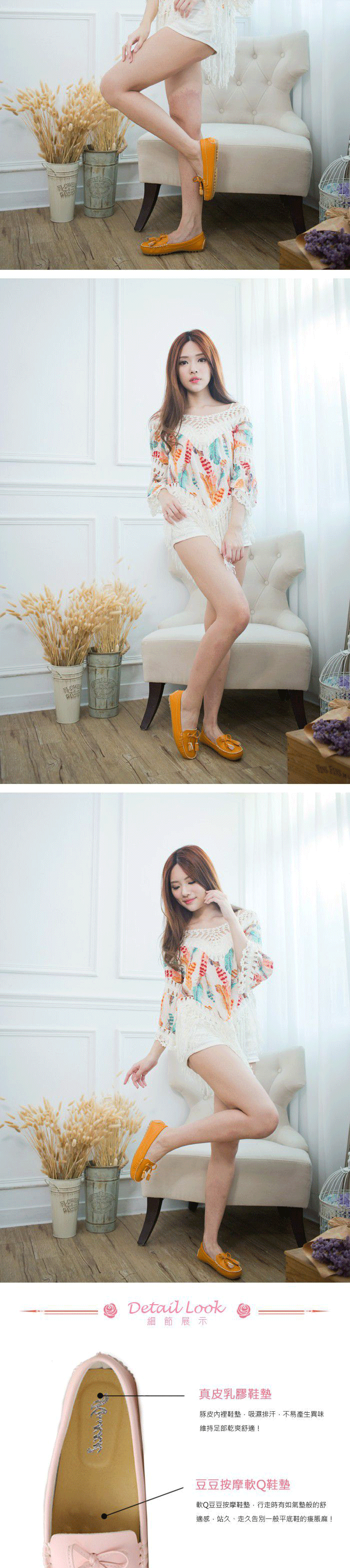 【KissXXX】豆豆鞋 真皮豆豆鞋/MIT足弓機能厚乳膠真皮墊小蝴蝶結莫卡辛豆豆鞋 橘