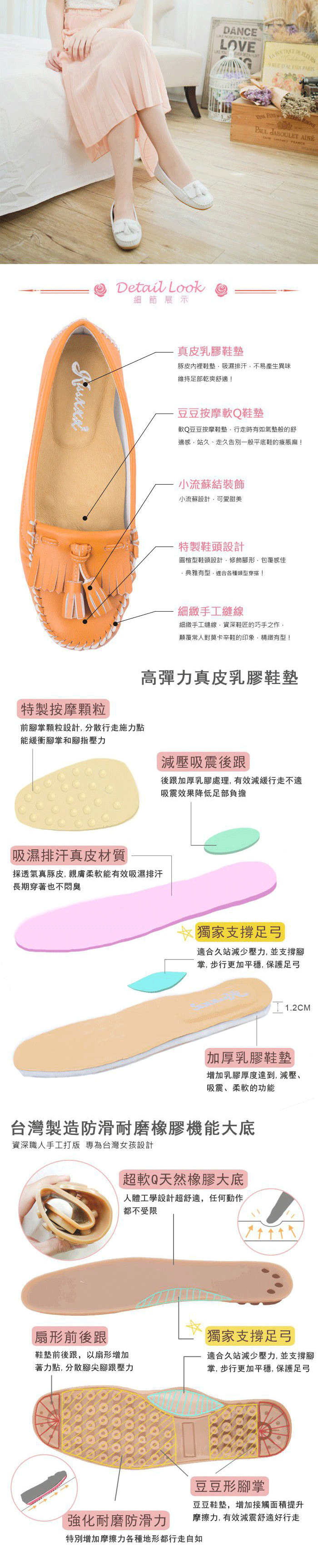 【KissXXX】豆豆鞋 真皮豆豆鞋/MIT足弓機能厚乳膠真皮墊小流蘇莫卡辛豆豆鞋 灰白