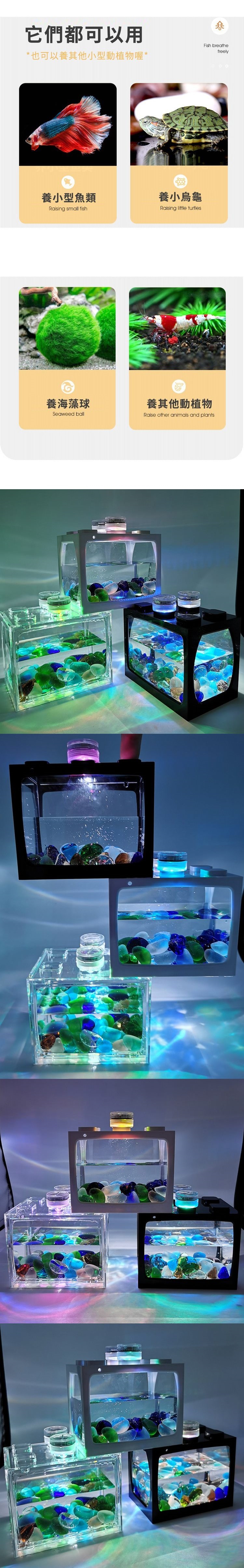 透明壓克力內缸,搭配積木造型外框可以自由堆疊靈活組合,不佔空間,搭配LED鈕扣燈,炫彩光線氣氛十足,優選透明材質,盡情欣賞水中生物,簡約美觀非常適合桌上型小魚缸,多功能用途,亦可當作昆蟲箱使用