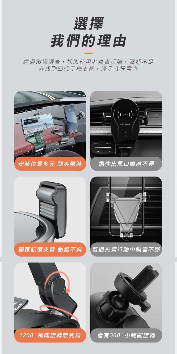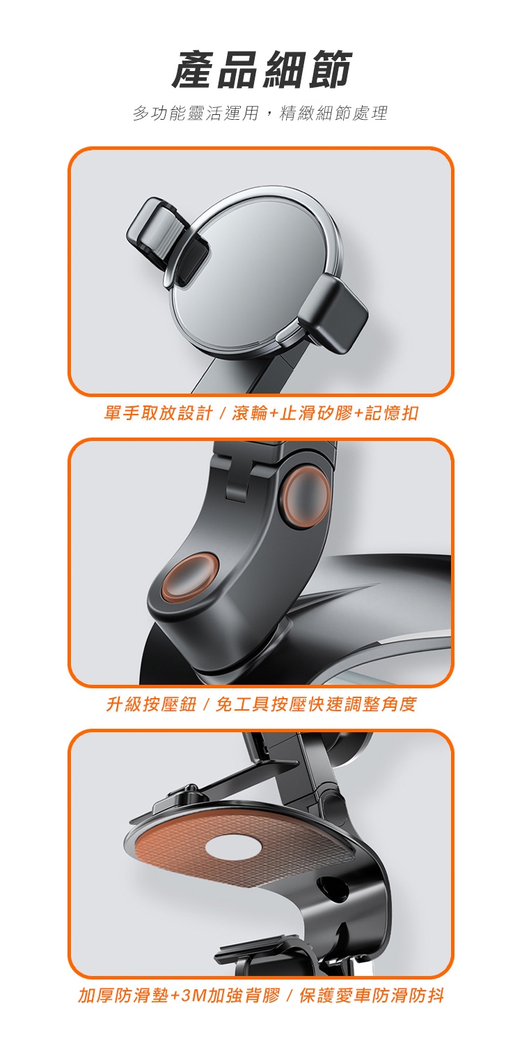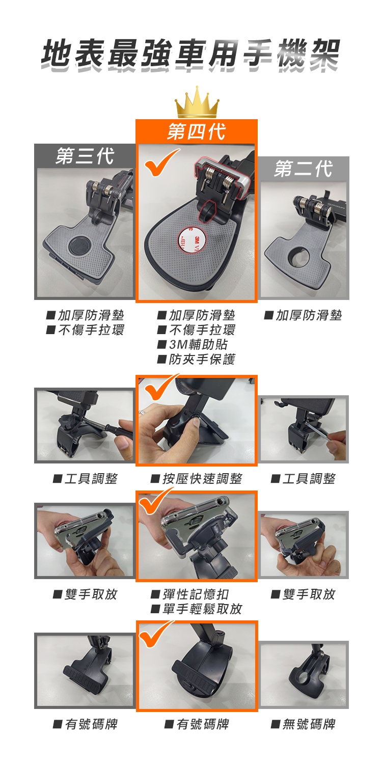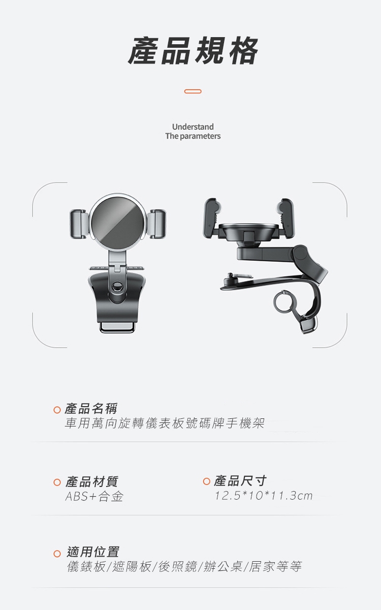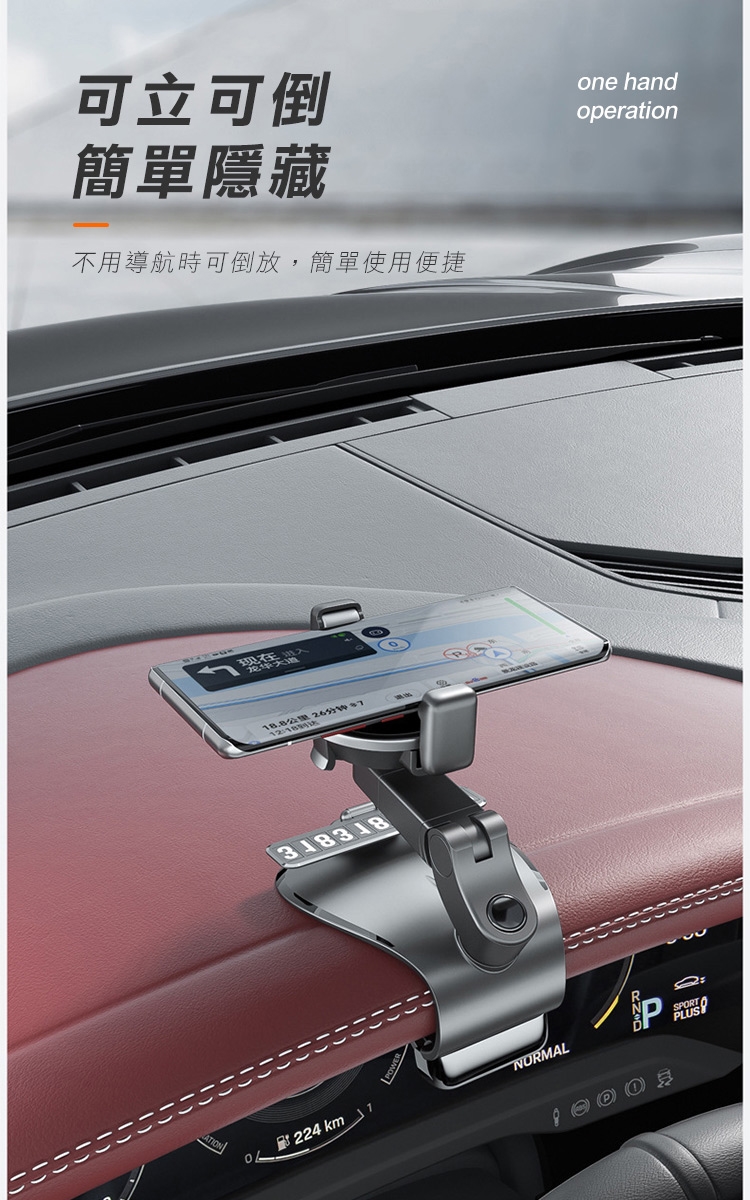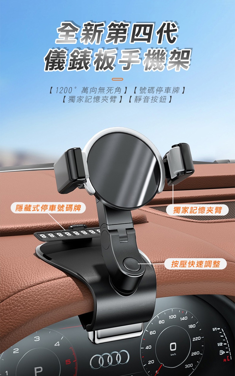 全新升級第四代多功能車用手機架 1200°萬象無死角!可安裝於儀表板、後視鏡、遮陽板,依照不同需求調整最適合的角度,行車出遊更安全!獨創可伸縮記憶夾臂,單手取放無阻礙! 多功能隱藏號碼牌設計,翻轉即可快速隱藏!讓您行車安全又便利~