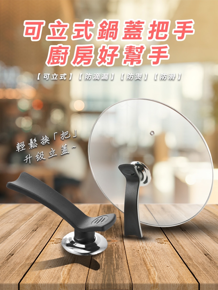 還在花錢買佔空間的鍋蓋架嗎? 新升級可立式鍋蓋把手 輕鬆將家裡的鍋蓋改裝升級立蓋!煮飯無須佔檯面空間! 便利又實用!電木材質手柄耐熱又耐腐蝕!廚房必備的料理神器!