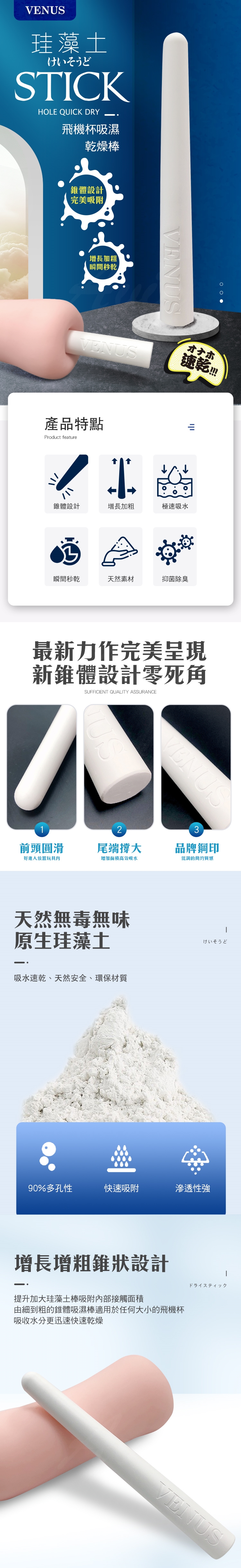 由細到粗的錐體吸濕棒適用於任何大小的飛機杯